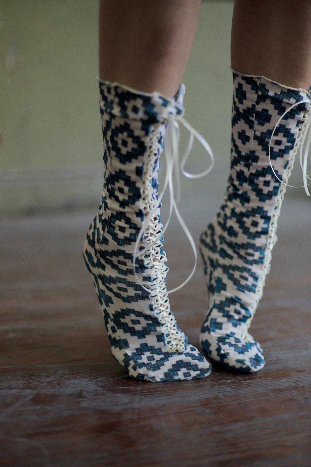 Medias estampadas con lazo frontal entrelazado estilo corset.