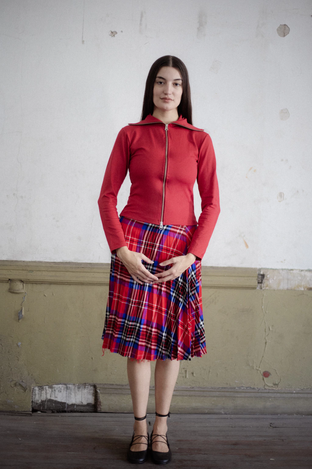 La modelo está usando la talle 1. En la última imagen, se incluyen las medidas de la prenda en plano.